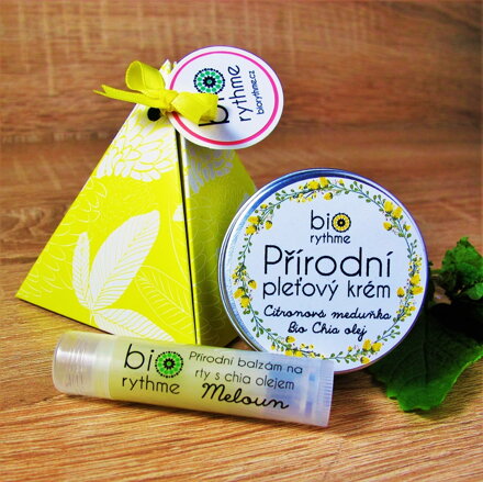 Kromě výrobků se v sadě nachází ozdobný letáček s informacemi o Biorythme + praktickými radami pro nákup přírodní kosmetiky.