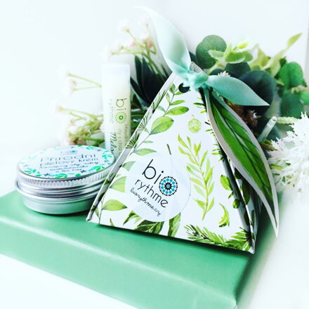 Kromě výrobků se v sadě nachází ozdobný letáček s informacemi o Biorythme + praktickými radami pro nákup přírodní kosmetiky.