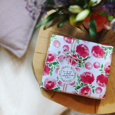 Všechny voňavé výrobky jsou balené do recyklované papírové krabičky, která je ještě zabalena do pivoňkového papíru od českých designérů ePipí. Rozměry balíčku jsou 17 x 14 cm.